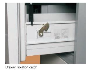 A simple, full proof isolation catch provided on the right hand side of each drawer permits its independent use and locking.